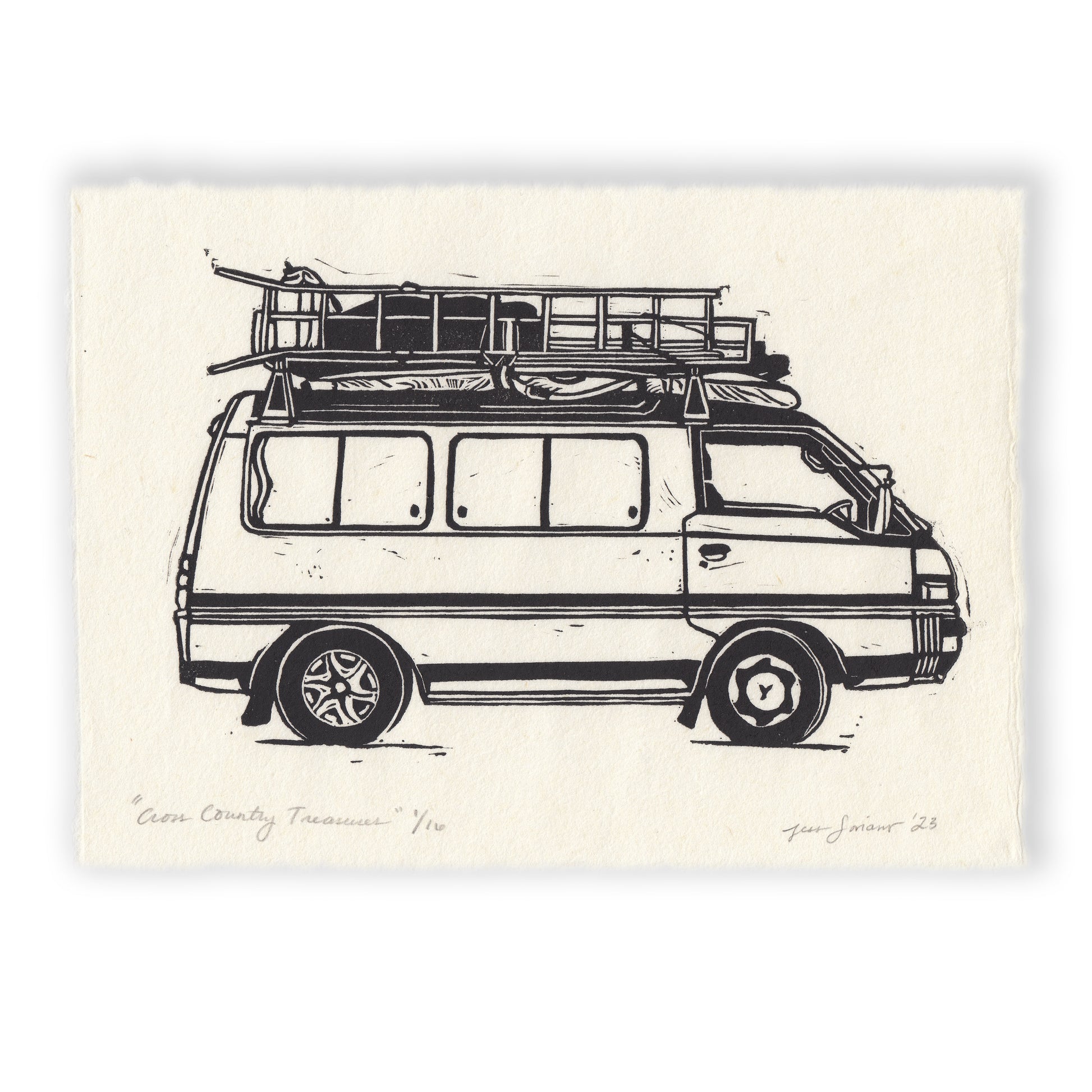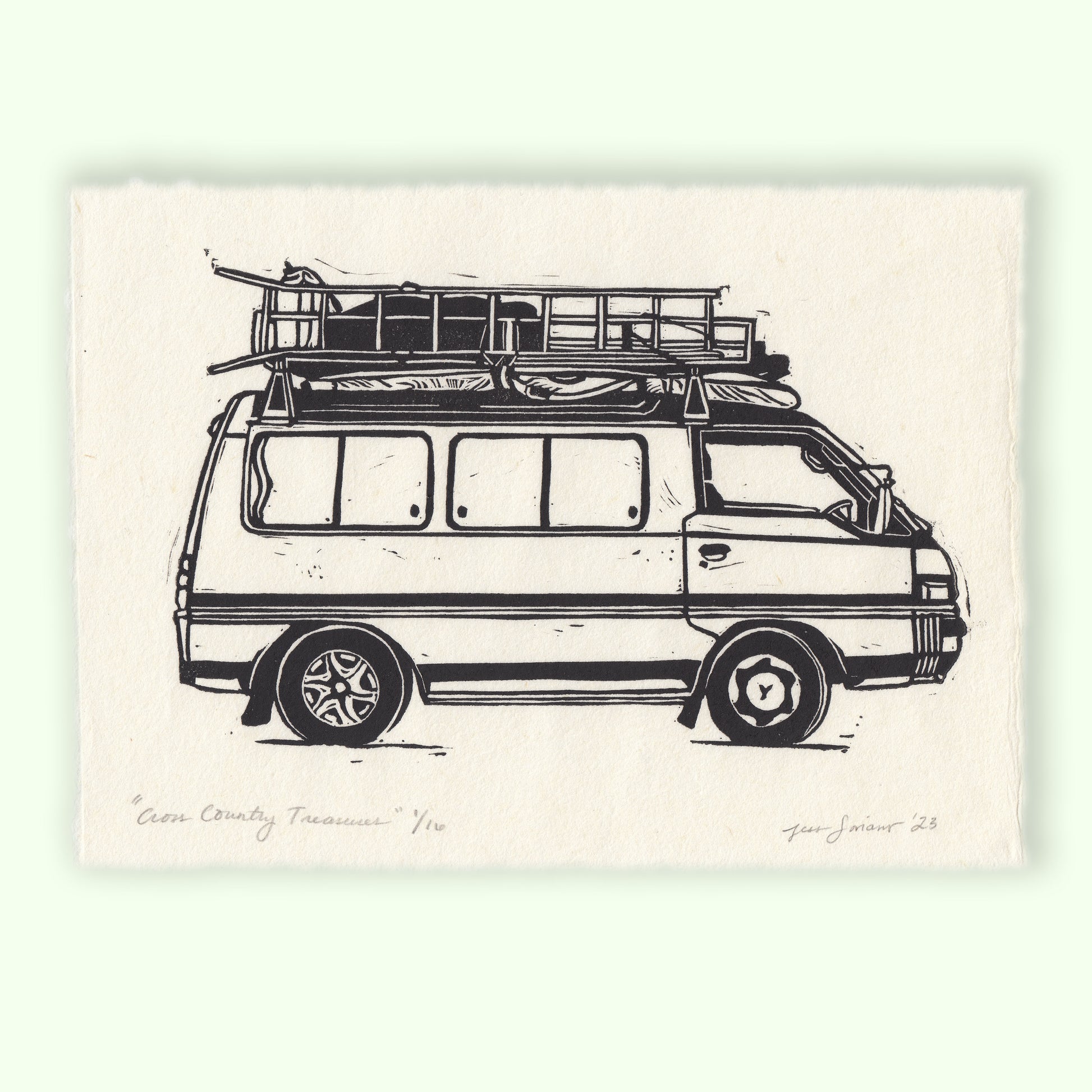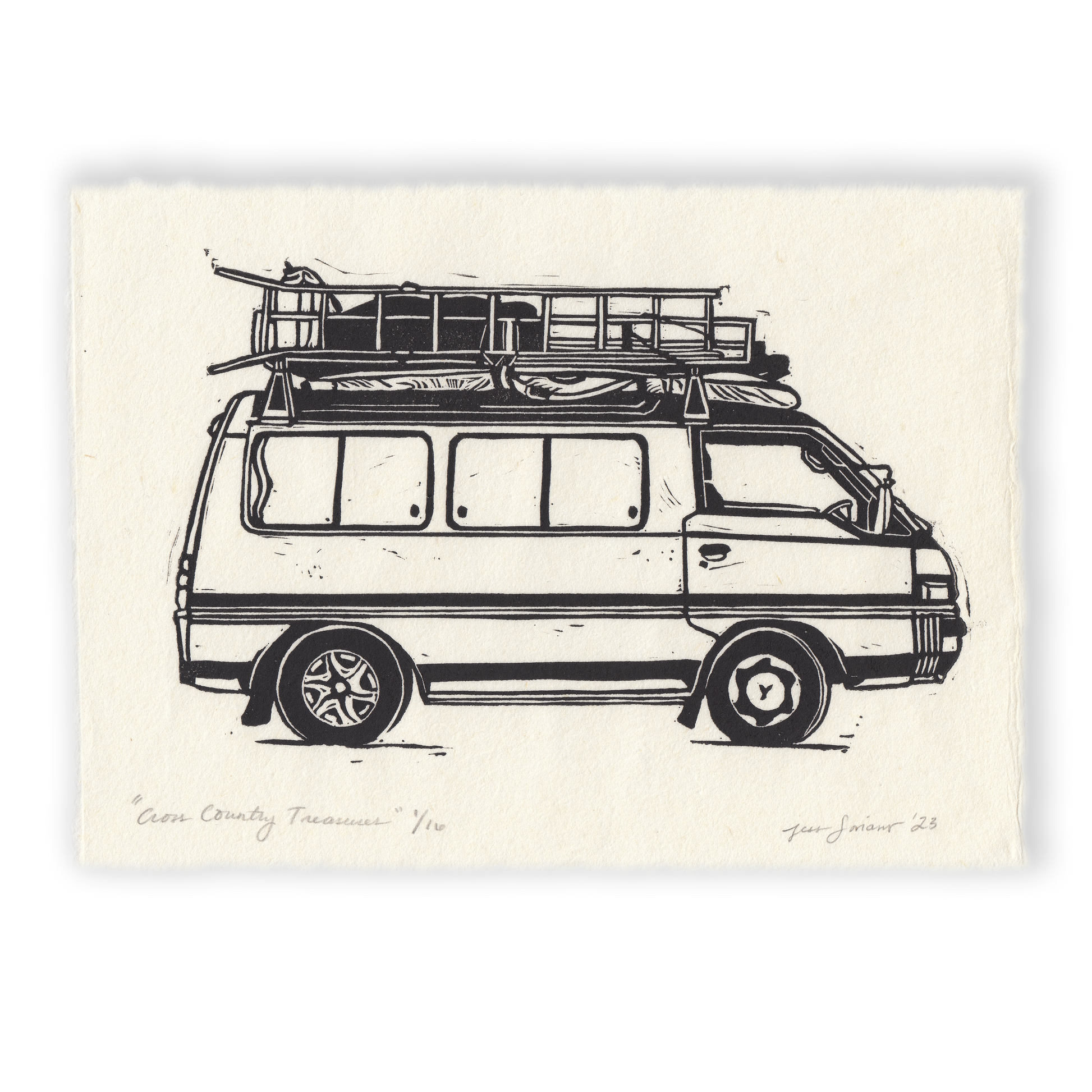 Uncover hidden natural treasures with our Cross Country Treasures Linocut Print. Inspired by my own van life experience traveling across Australia, this design is carefully printed onto hand-cut mulberry (or kozo) paper using traditional linocut techniques. Each print is a unique reflection of your love for adventure and the great outdoors. Where there is less to worry about and more to explore, when is your next road trip adventure?