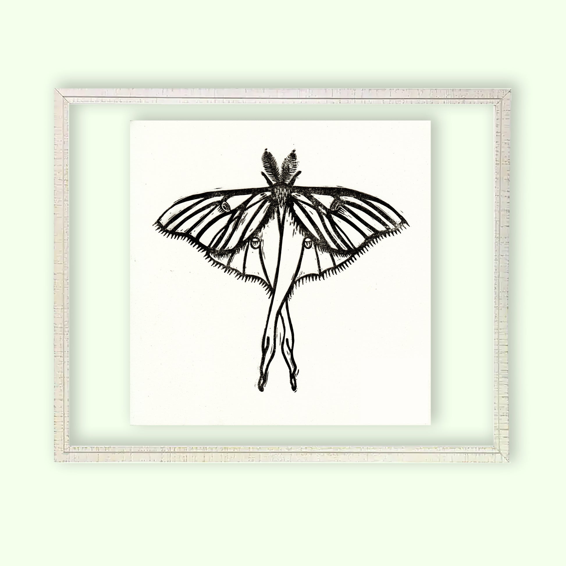 Framed Luna Moth Linocut Print