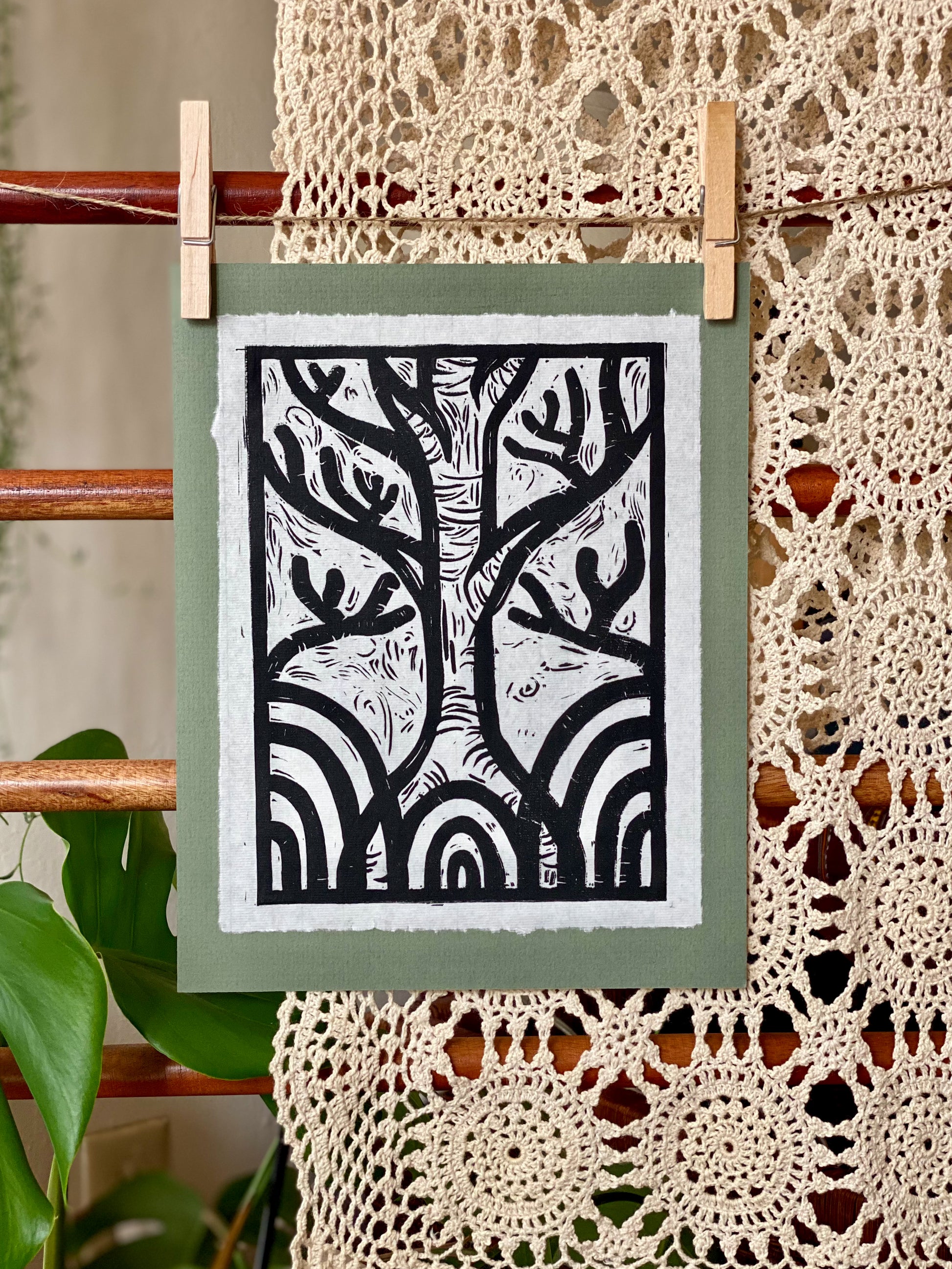 ~ Archival linoleum relief print created on high-quality, hand cut paper.